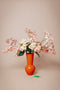 Dit boeket is een theatrale ode aan kleur, textuur en geschiedenis. Gevat in een antieke vaas van kunstschilder August Le Gras, die bekend stond om zijn verfijnde bloemstillevens en liefde voor diepe, gelaagde tinten. Zijn penseelstreken lijken hier te zijn vertaald naar glas: subtiele motieven, rijke bruintinten en een vleug romantisch verval.