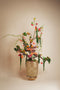 Combineer dit zijden boeket van vijgen, mandarijnen, limoenen en roze bestjes met een kleurrijk tafelkleed of een vaas van keramiek in snoepkleuren. Mag best een beetje over the top zijn. Ideaal voor keuken, eetkamer of in de hal.