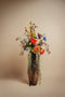 De herfst van de Loir gevat in een boeket en een Zuid-Franse Vallauris vaas van keramiek. Met de favoriete kleuren van vriendin Odette, die dol was op de herfst. Hét seizoen waarin de greppels zich vulden met stromend water, de bomen andere kleuren aannamen en de kastanjes moesten worden gepoft. Met één kastanje steevast in haar schort… want goed tegen reuma.