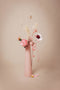 Deze ijsblauwe tak kan gemakkelijk min vijftien graden aan. Leuk met de paarse pauwenveren en de lila tulp. Ondersteboven hangen kan ook.